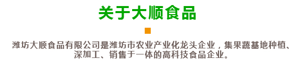 濰坊大順食品有限公司創(chuàng)建于2006年10月,位于中國出口蔬菜基地安丘市。地理位置優(yōu)越,距離青島港100公里,是濰坊市農(nóng)業(yè)產(chǎn)業(yè)化龍頭企業(yè),2022年被授予國家級高新技術(shù)企業(yè),2024年被授予省“專精特新中小企業(yè)”。公司通過了歐盟BRC質(zhì)量體系認證,ISO9000認證,清真HALAL認證。公司占地面積26680㎡,員工190人,主要制造、銷售VF果蔬脆片、FD凍干果蔬、香菇素牛肉、黑蒜等產(chǎn)品,年產(chǎn)能6000噸,創(chuàng)匯1000萬美元!